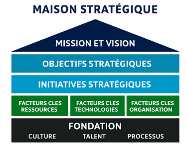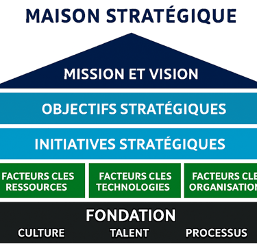 En complément de notre formation, nous accompagnons les organisations dans l’élaboration de leur plan stratégique grâce à notre processus éprouvé, conçu pour bâtir une “maison stratégique” solide et durable.